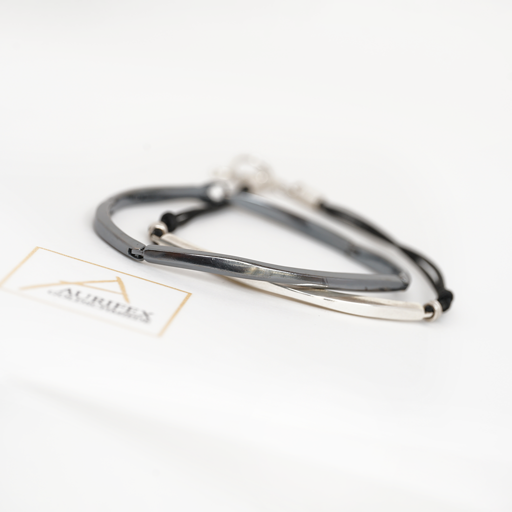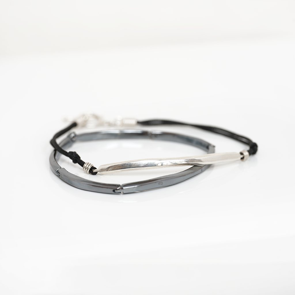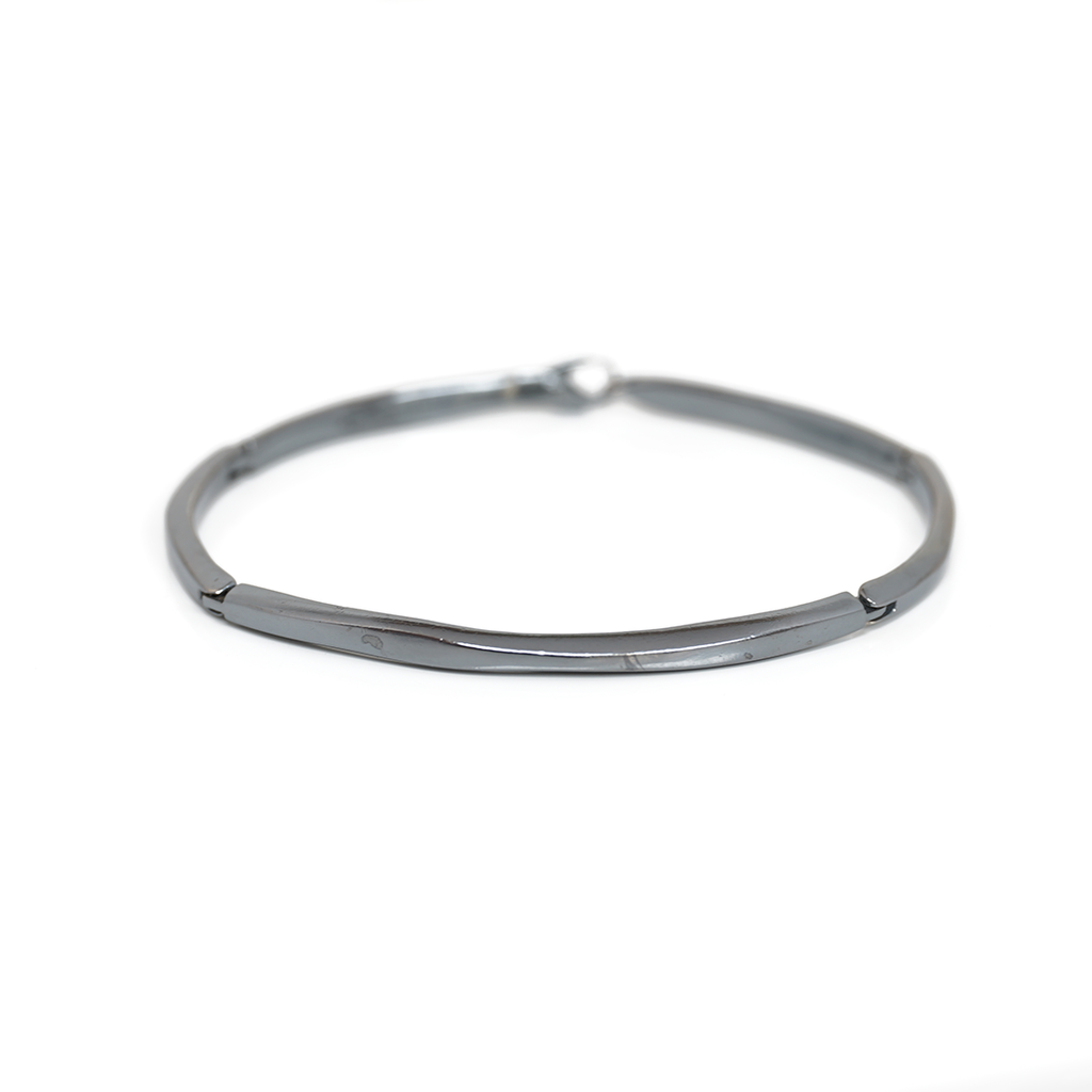 Ein außergewöhnlicher Armreif aus der Kollektion PUR in 925/000 Silber mit geschwärzter und polierter Oberfläche. Der bewegliche Armreif besteht aus fünf beweglich miteinander verbundenen Elementen und passt sich so optimal jedem Handgelenk an.