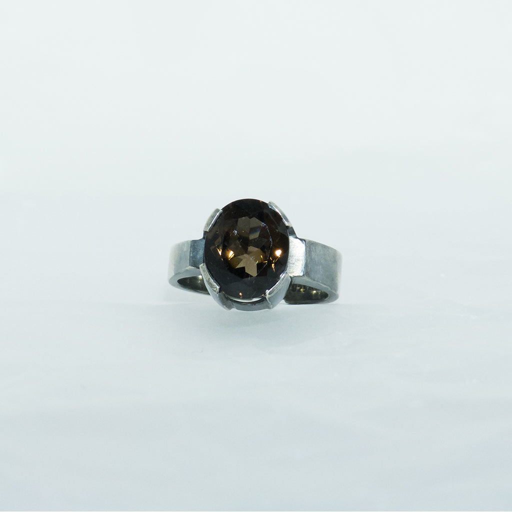 Ein farbintensiver Ring aus unserer Kollektion Facettenreich gefertigt aus 925/000 Silber geschwärzt. Passend dazu wurde ein ovaler Rauchquarz mit 5,2ct ausgewählt, der perfekt zu dem geschwärzten Silber passt.