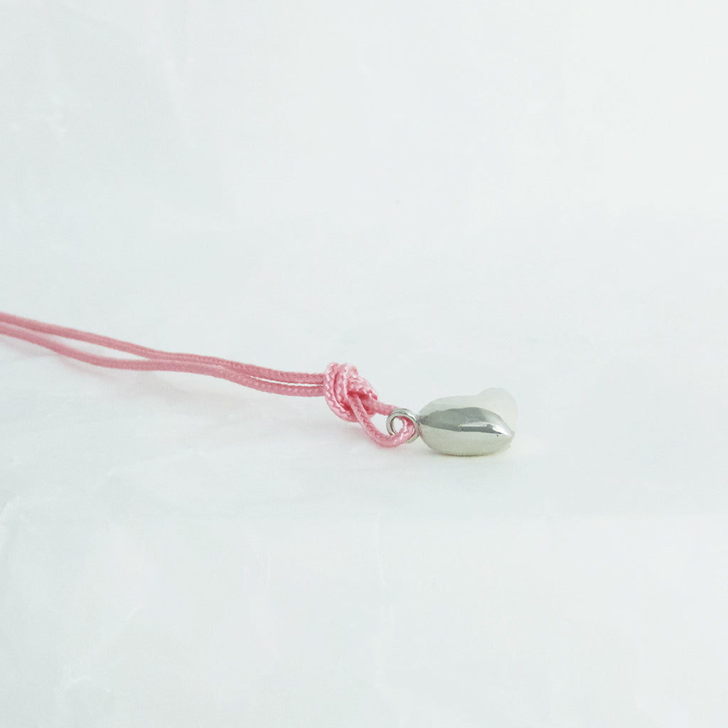 Ein zarter, bauchiger Anhänger aus der Kollektion Herzen gefertigt aus 925/000 Silber. Befestigt ist der Anhänger an einem Band aus Paracord, der Anhänger kann jedoch auch an einer zarten Ösenkette getragen werden. Die Maße des Anhängers sind 12x12mm.