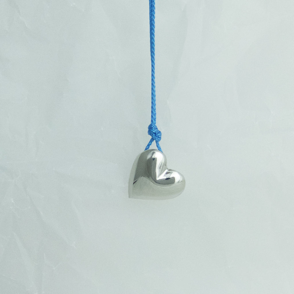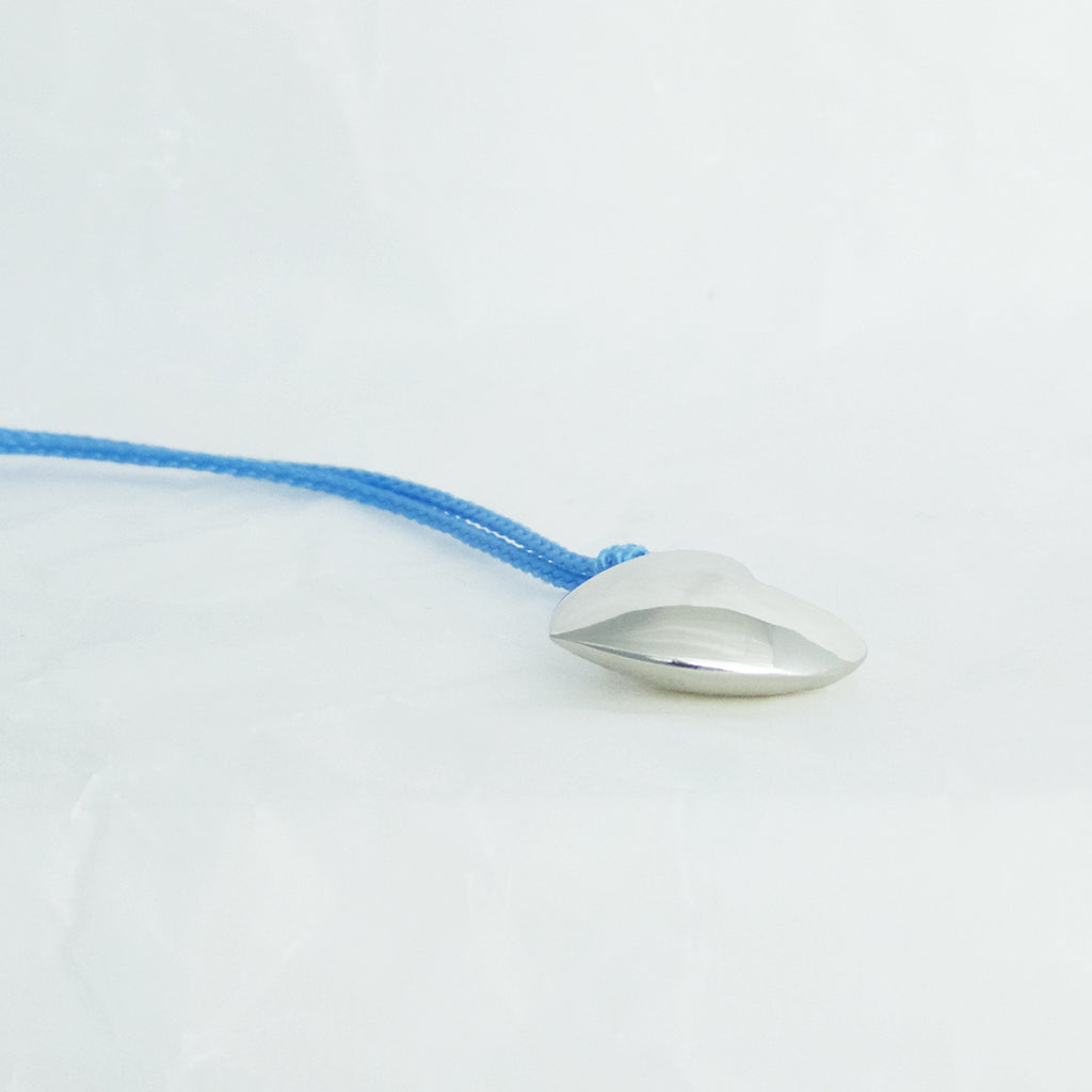 Ein zarter, gewölbter Anhänger aus der Kollektion Herzen gefertigt aus 925/000 Silber. Befestigt ist der Anhänger an einem Band aus Paracord, der Anhänger kann jedoch auch an einer zarten Ösenkette befestigt werden. Das Herz ist 22x22mm groß.