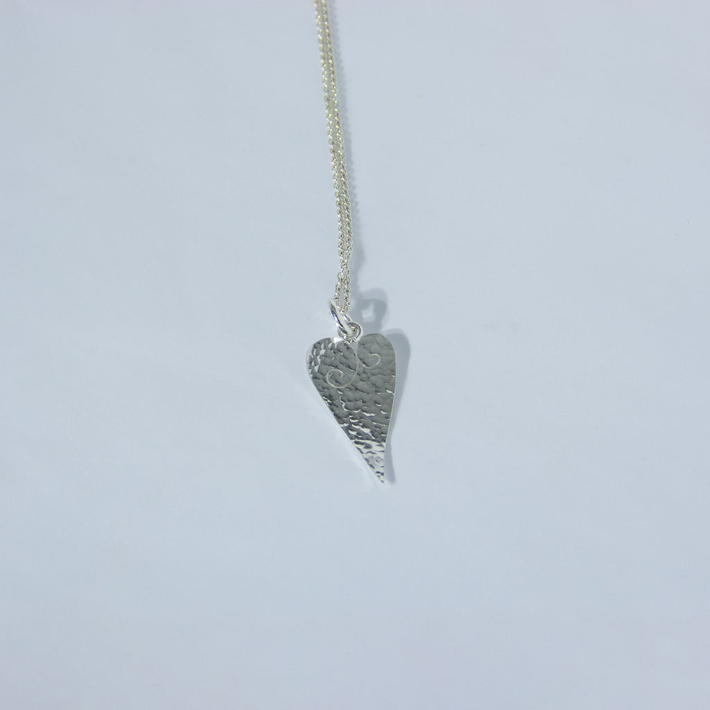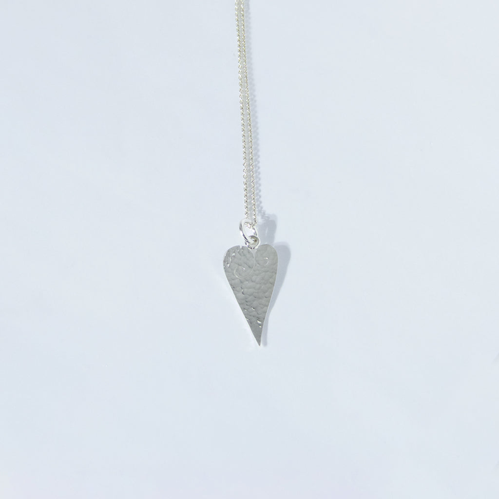 Ein Anhänger aus unserer Kollektion Herzen handgefertigt aus 925/000 Silber. Die Oberfläche ist geschmiedet und poliert. Hierdurch entstehen spannende Lichtreflexe auf der Oberfläche. Der Preis bezieht sich auf den Anhänger mit einem Band aus Paracord in 80cm Länge. Die hier abgebildete Kette kostet 55,00€ für 80cm Länge.