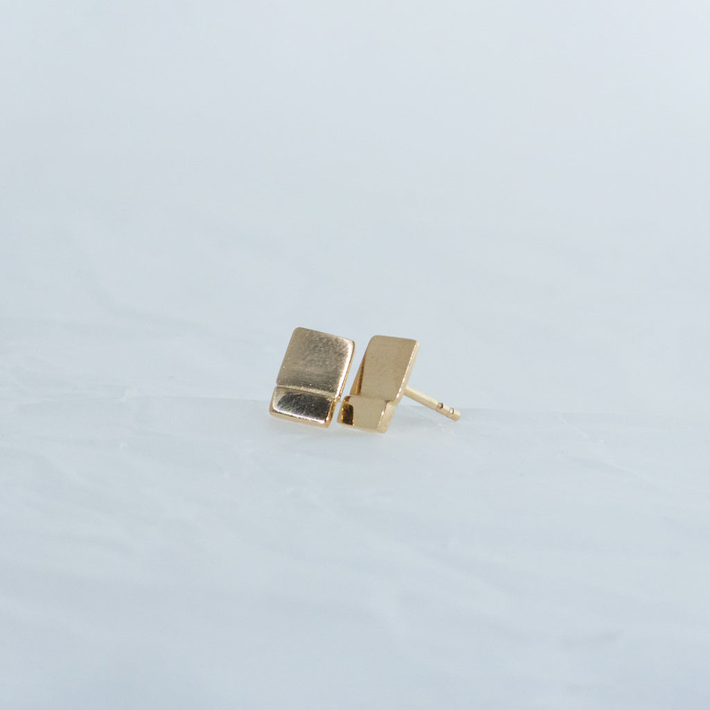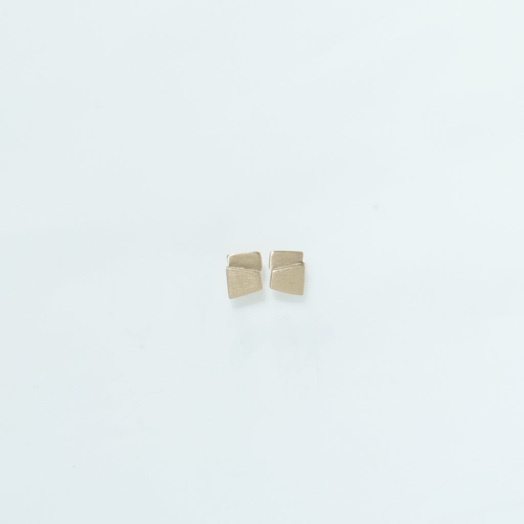 Ein filigraner Ohrschmuck aus der Kollektion Flächen gefertigt in 750/000 Gelbgold mit einer mattierten Oberfläche. Die Ohrstecker bestehen aus zwei asymmetrischen Flächen. Die Maße des Ohrsteckers sind 7x8mm.