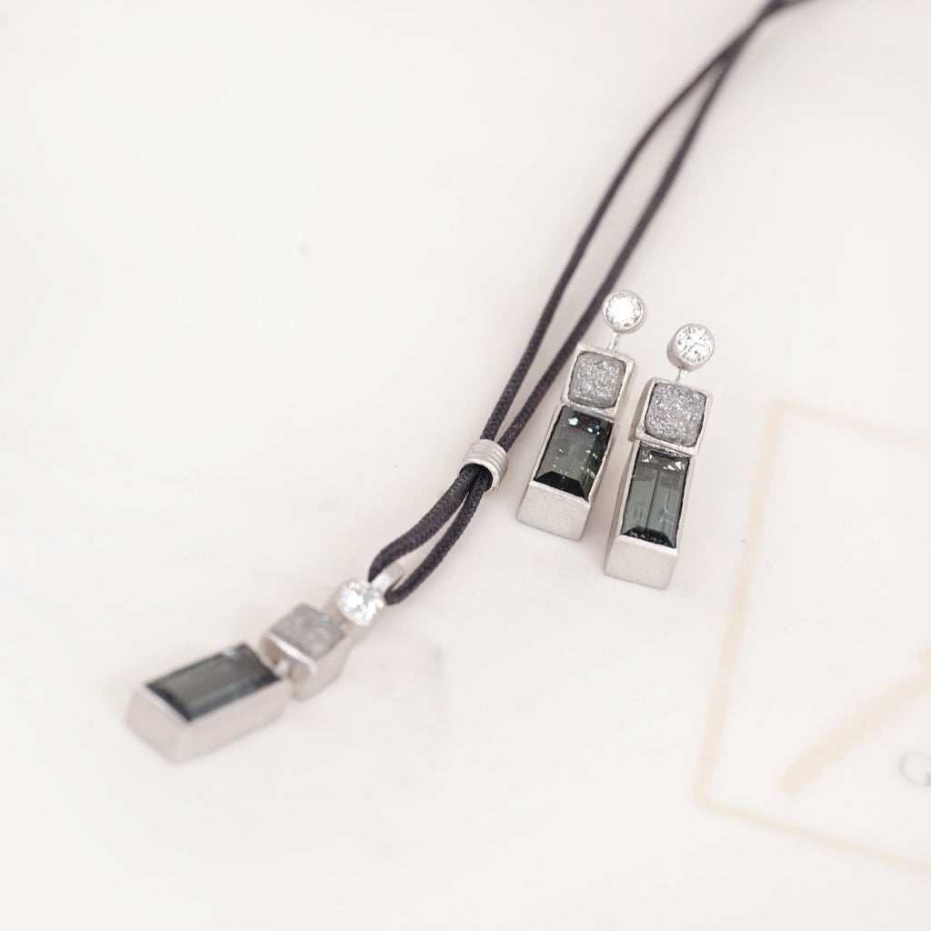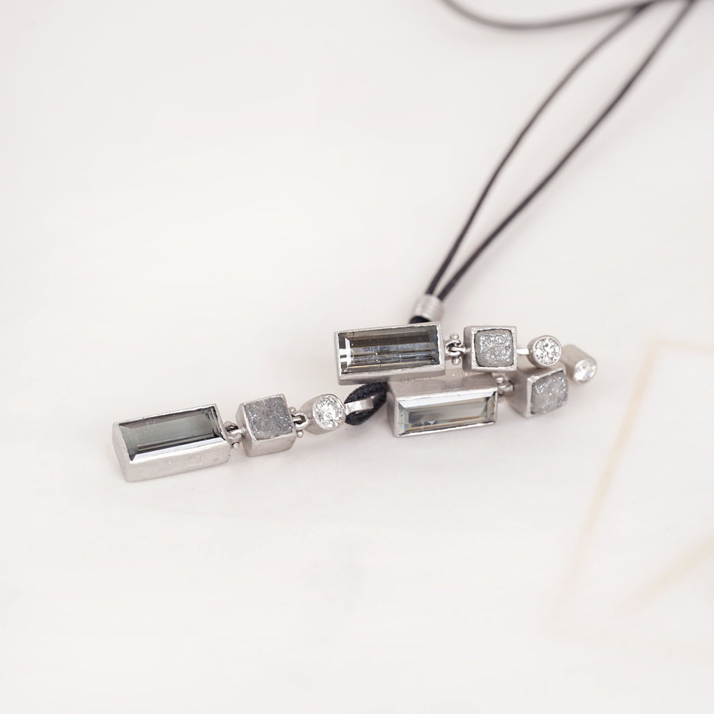 Halsschmuck aus der Kollektion Unikat mit Turmalin, Rohdiamant und Brillant