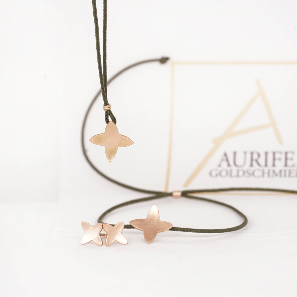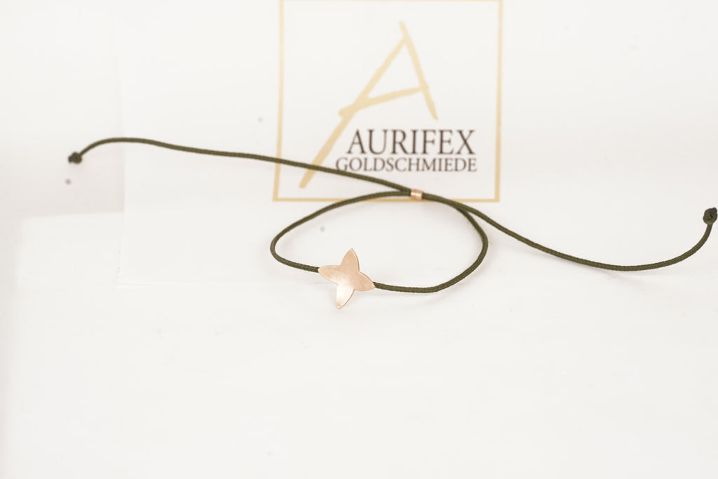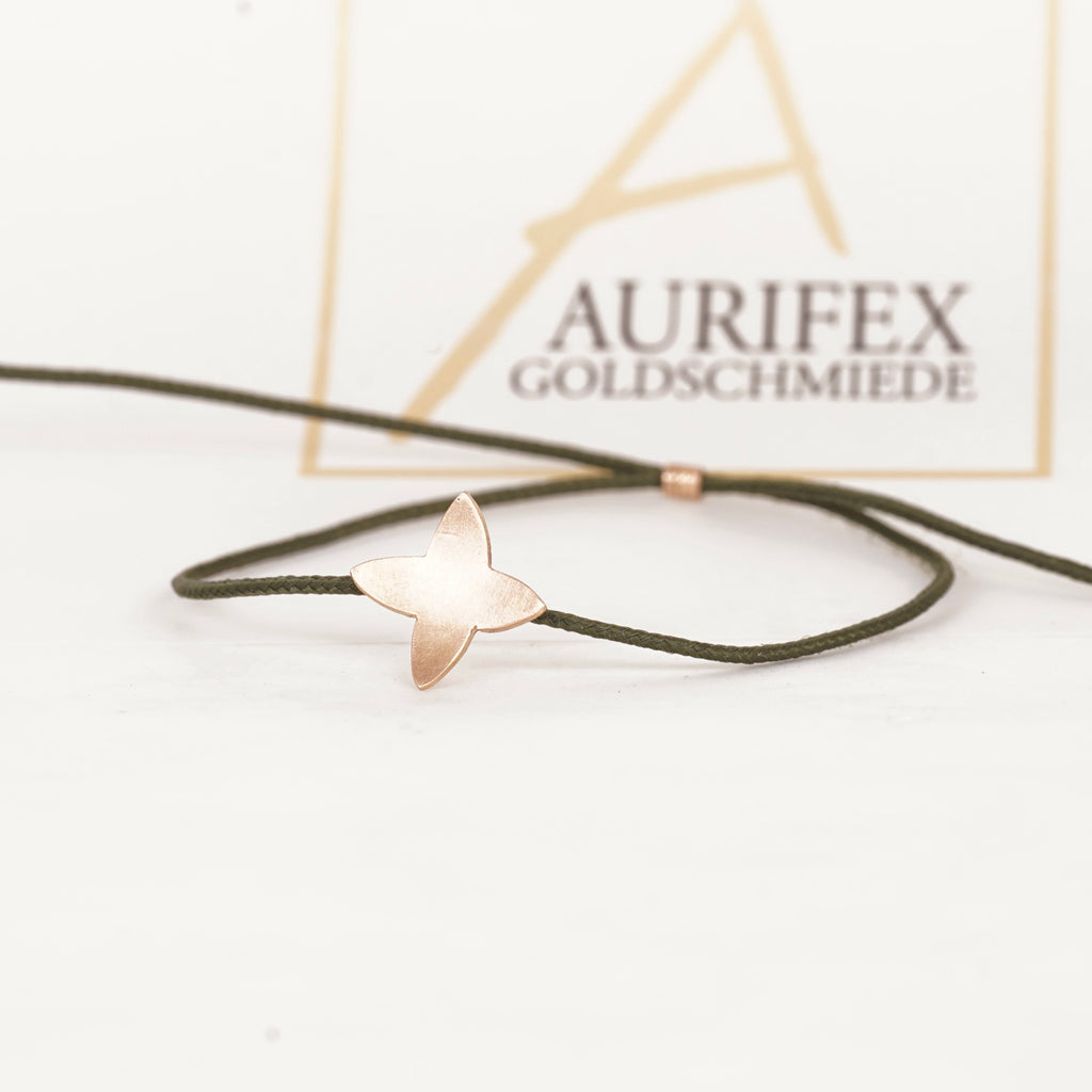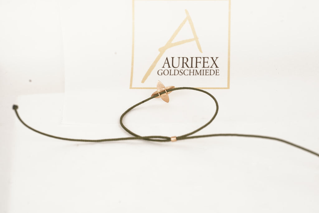 A lightweight bracelet from the Fine Form collection in 750/000 rose gold with a matte finish. The bracelet is attached to a paracord strap and can be adjusted in length using the sliding sleeve.