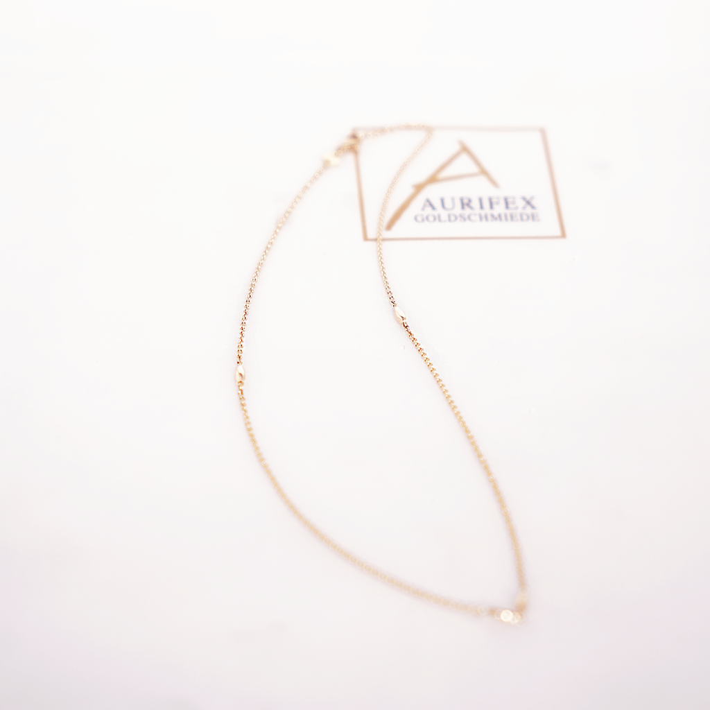 A delicate necklace from the Feine Form collection in 750/000 yellow gold with a polished surface. The anchor chain contains four Feine Formen tails in 750/000 yellow gold.