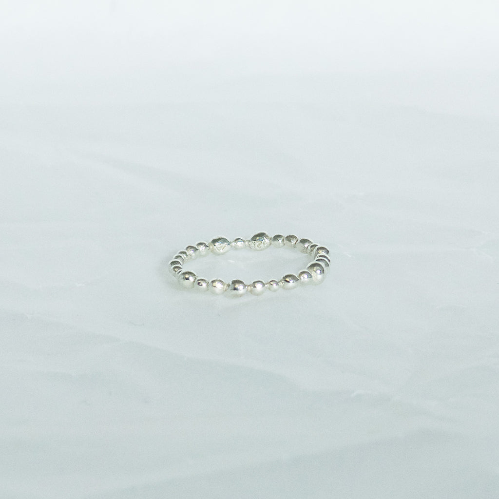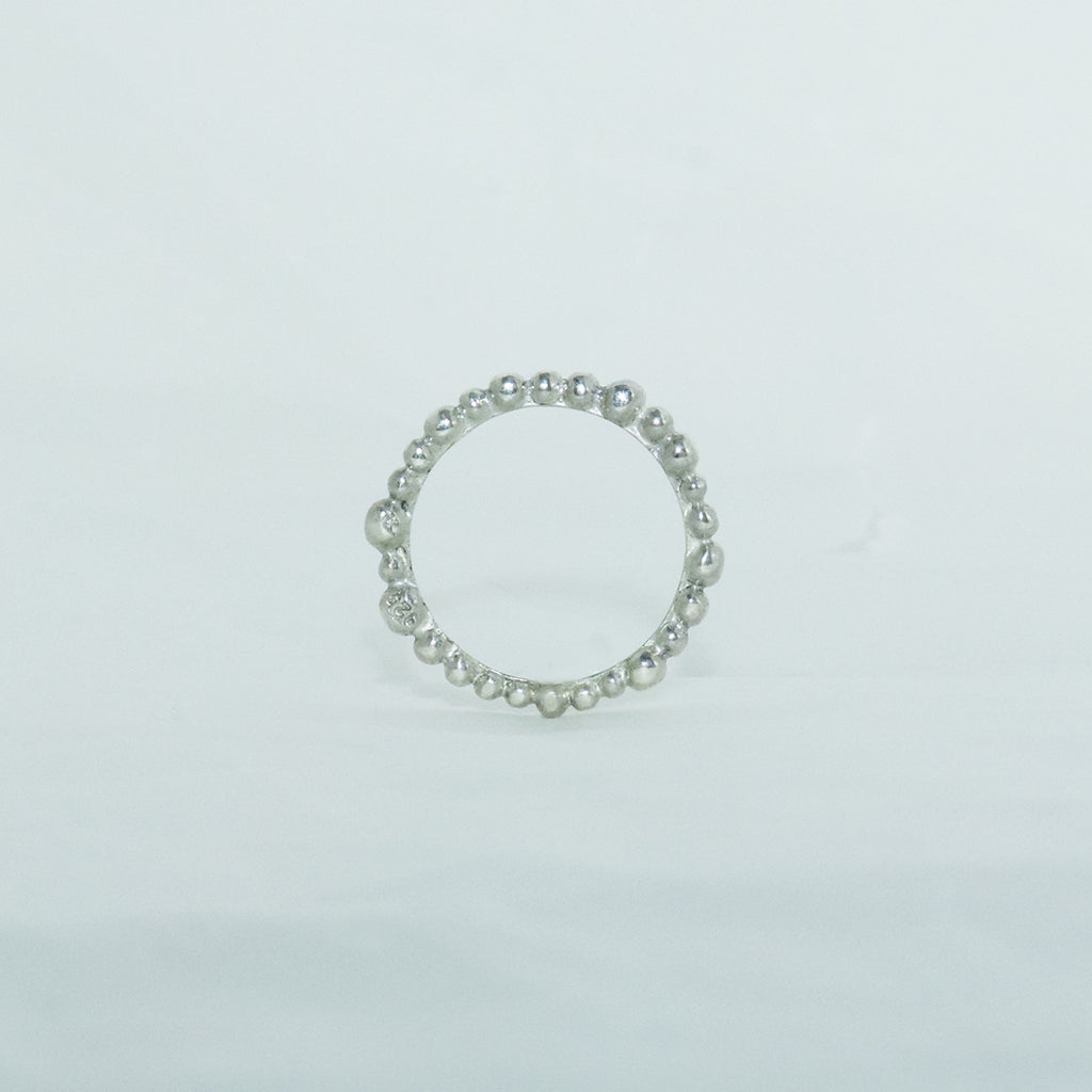 aA delicate ring consisting of irregular spheres made in 925/000 silver.