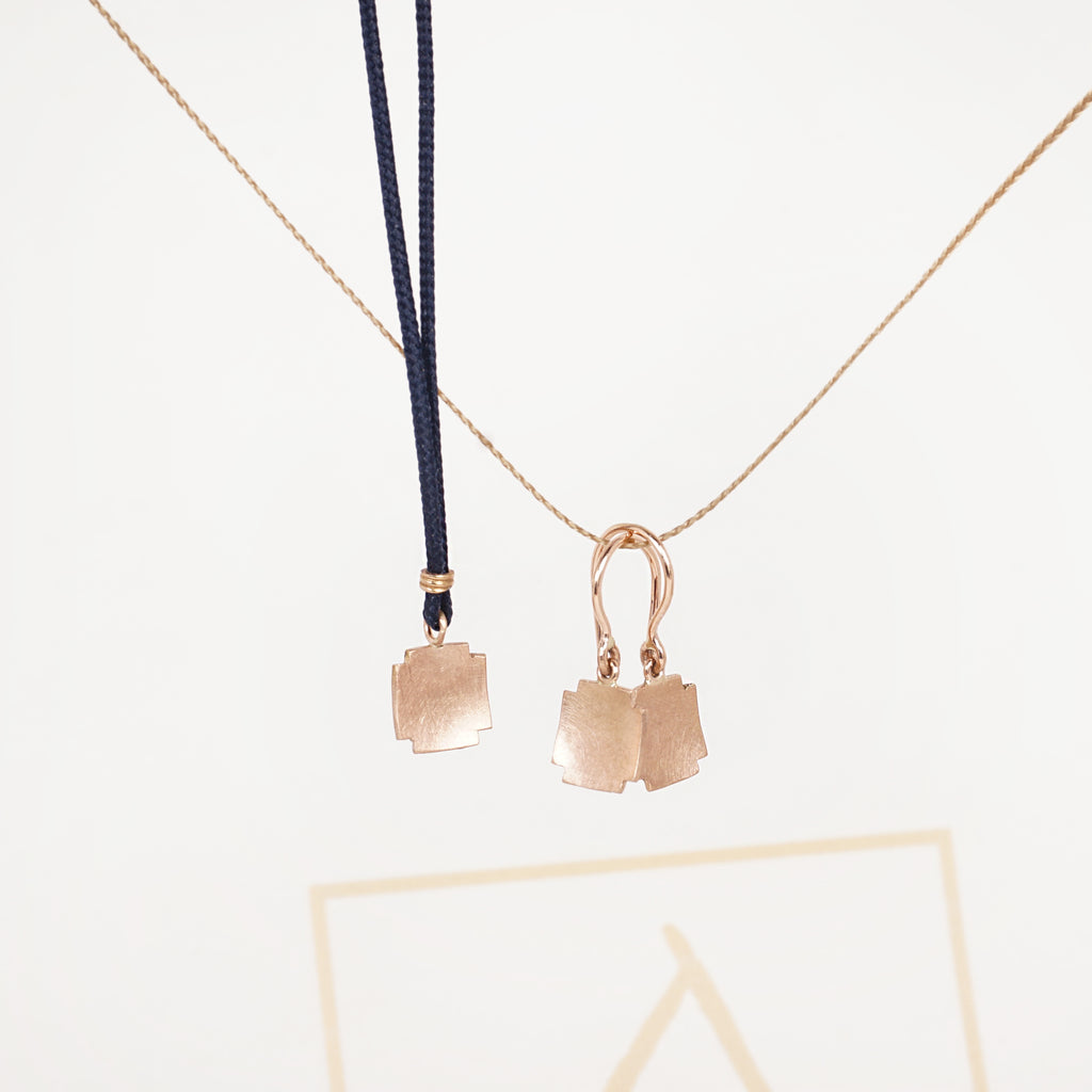 A delicate necklace from the Fine Form collection in 750/000 rose gold with a matte finish. The pendant is attached to a paracord cord and can be adjusted in length using the sliding sleeve.