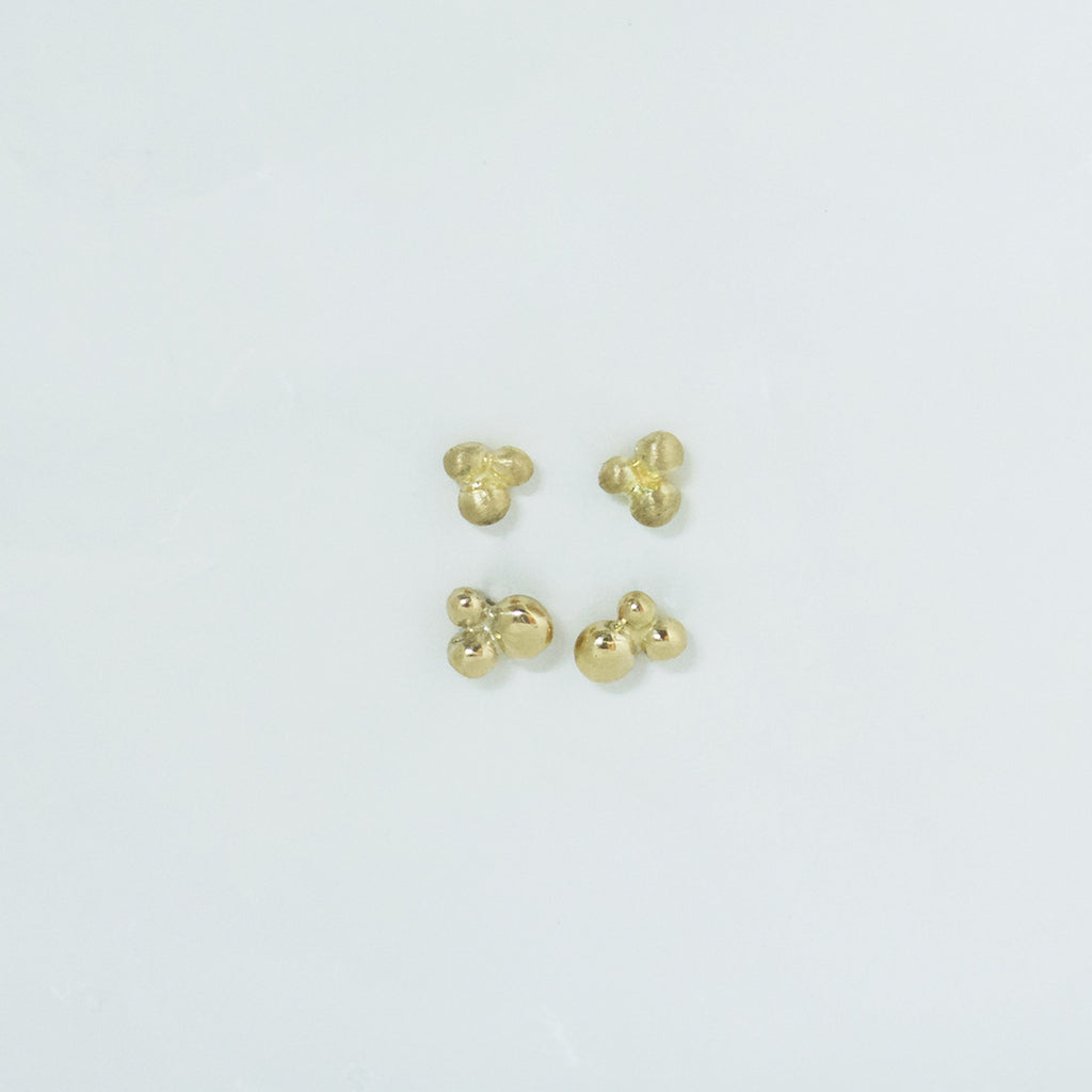Filigree stud earrings from the Fine Shapes collection made in 750/000 yellow gold. The ear studs each consist of three irregular spheres. We offer this model with both a matt and a polished surface. The ear studs have the dimensions 4x4mm.