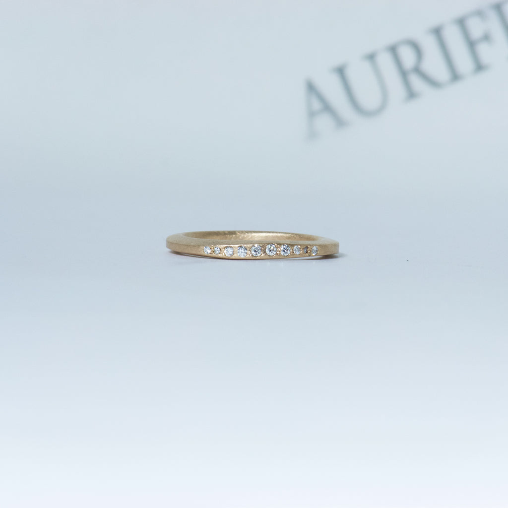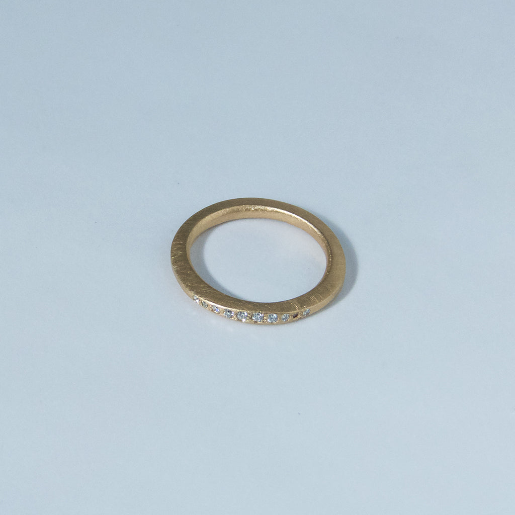 A delicate ring from the PUR collection crafted in 750/000 red gold with a matte finish, set with diamonds in tw-si totaling approximately 0.21ct. This flat, medium width model is perfect for pinning and combining with other rings.