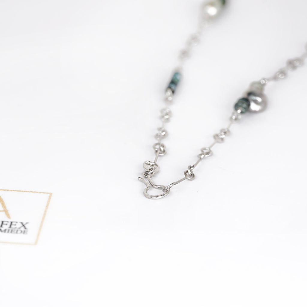 Necklace from the Unikat collection in platinum with Keshi pearls, labradorite, and tourmaline