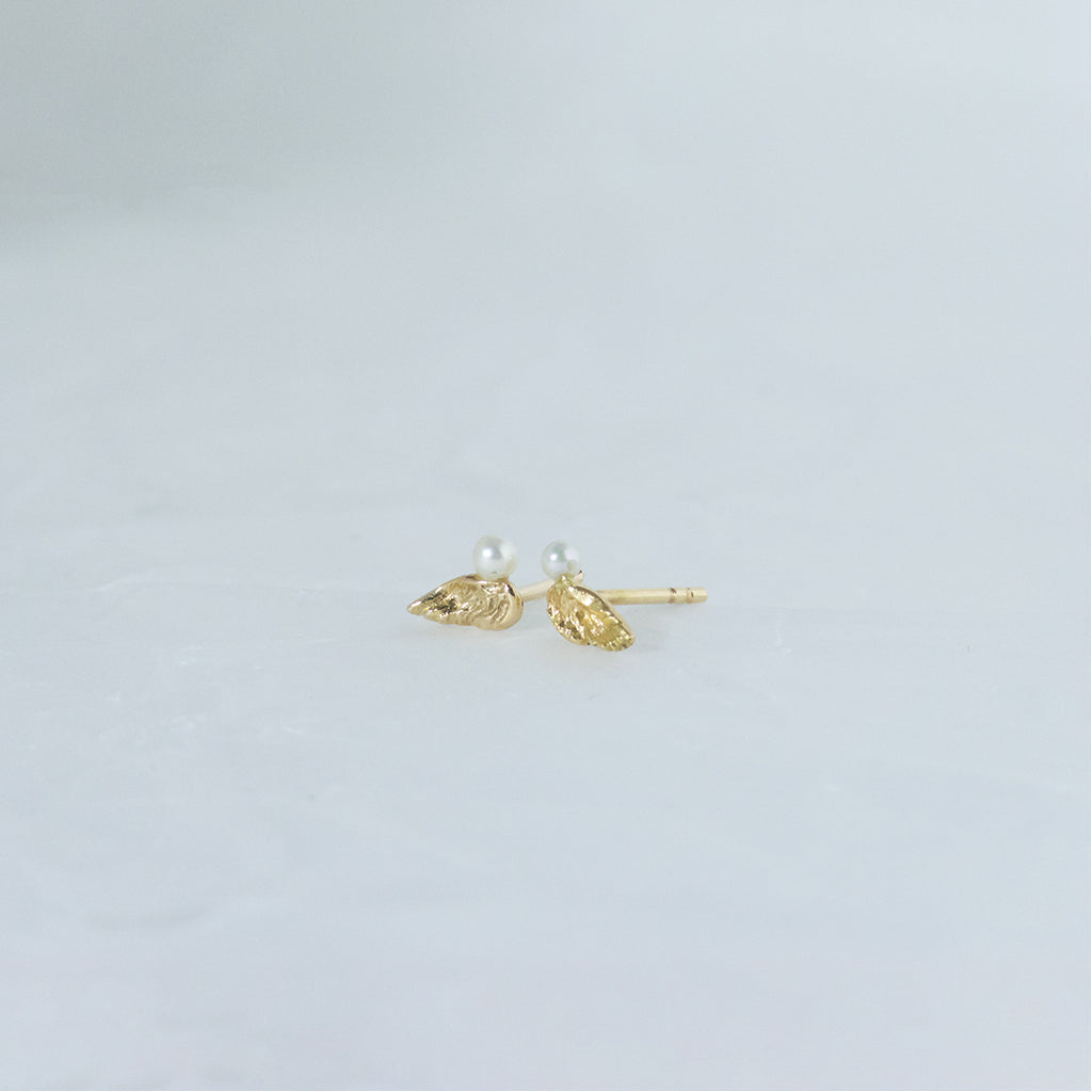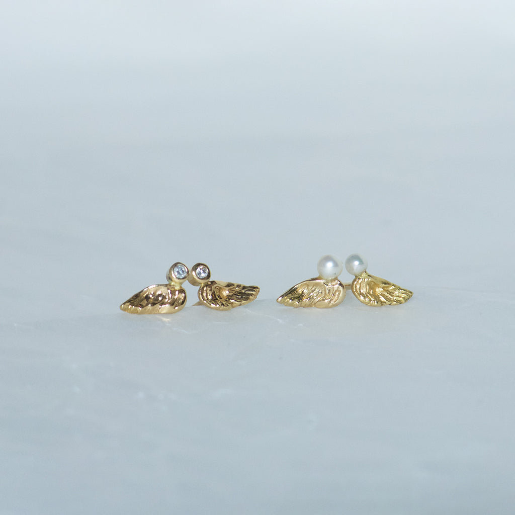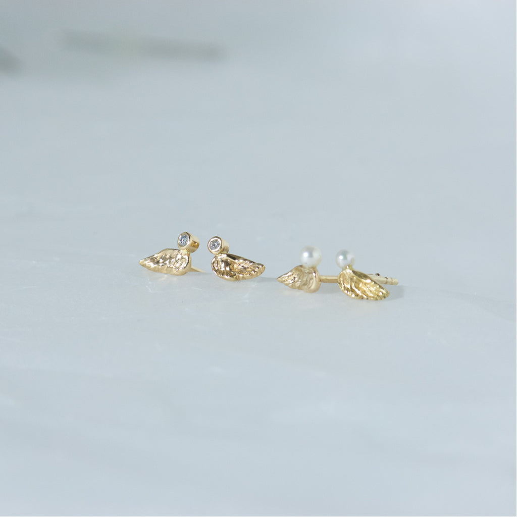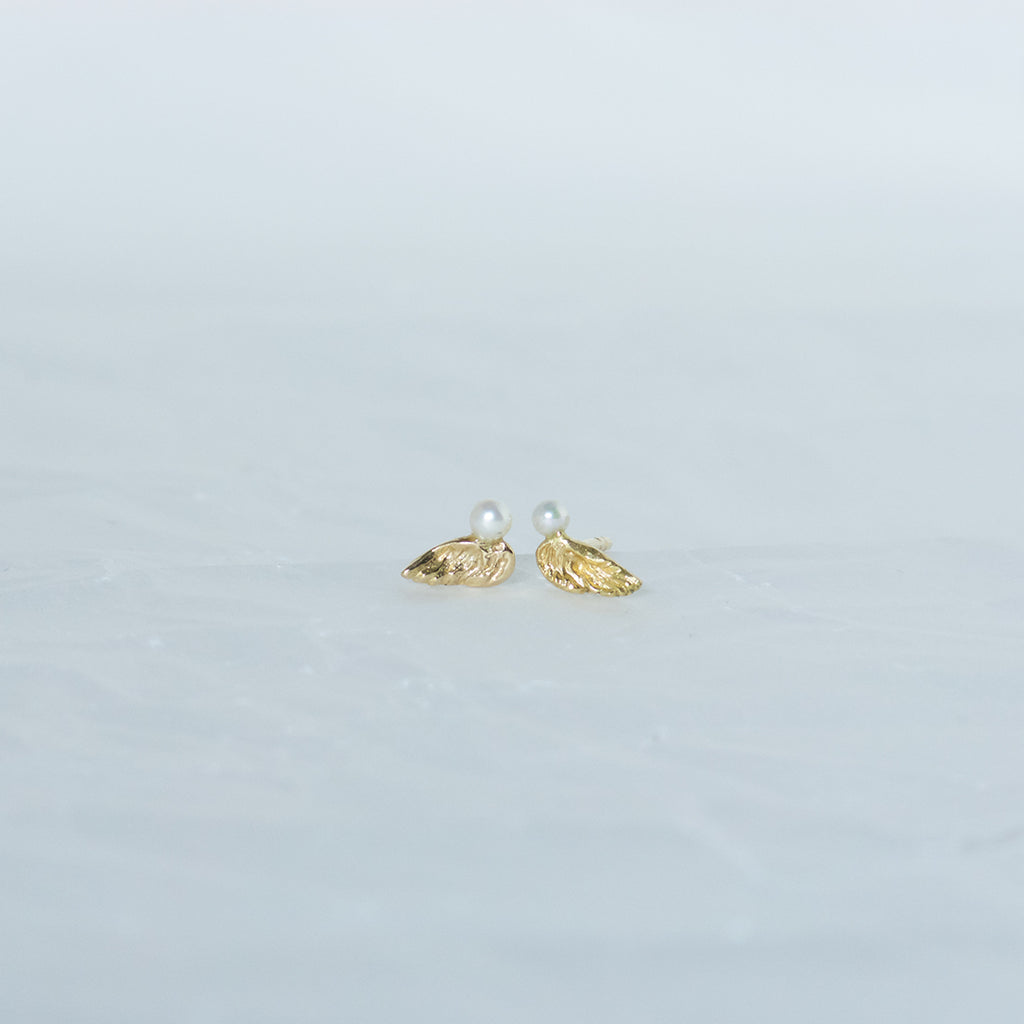 Tender Stud earrings from the Fine Shapes collection made in 750/000 yellow gold. The shape of the stud earrings are wings with a length of 9mm. The finishing touches on this ear jewellery are two white freshwater cultured pearls.