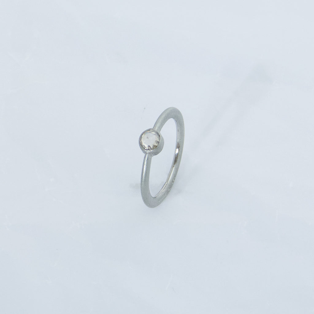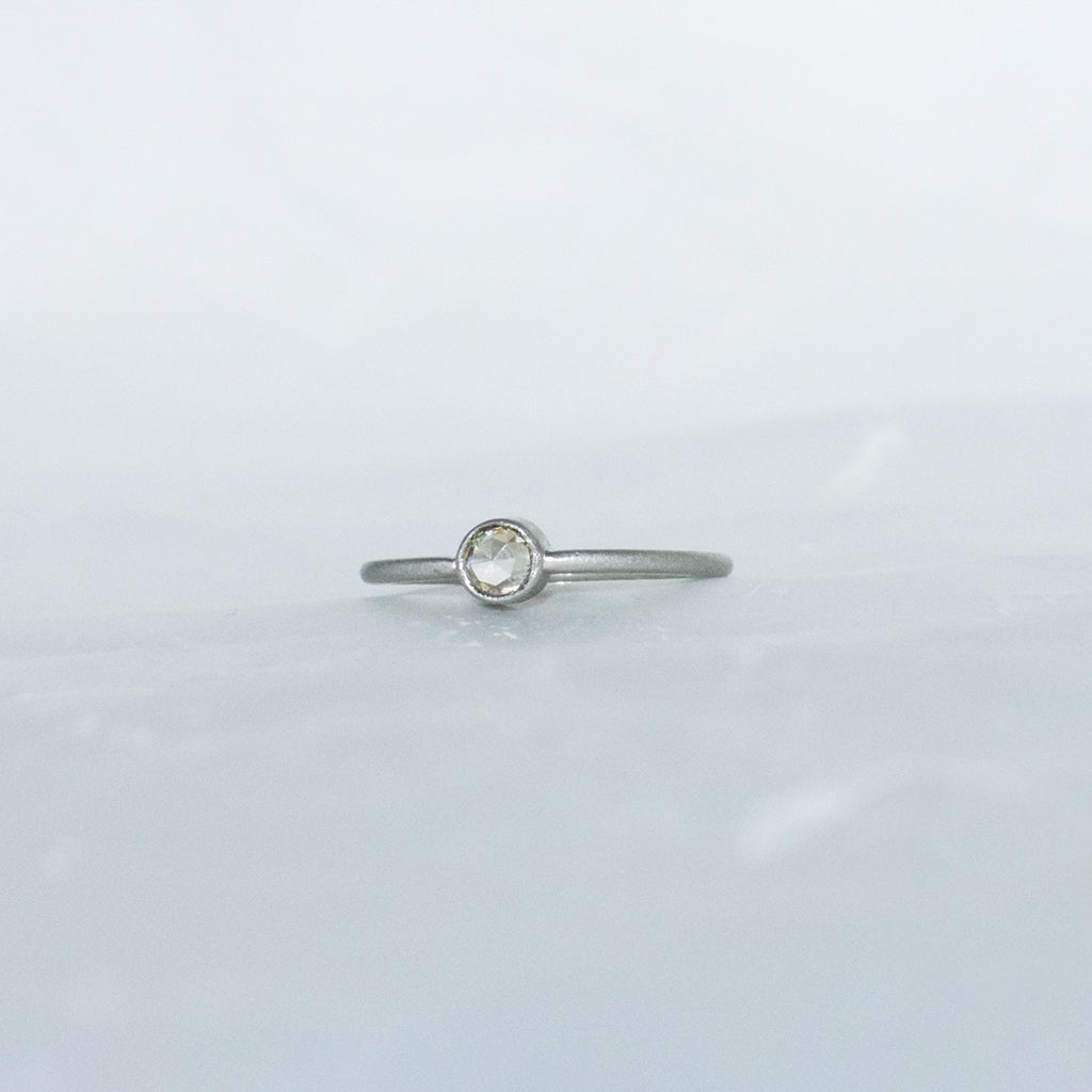 A delicate ring from the Diamond collection with a high oval ring band made in platinum. The focal point is a sparkling white diamond rose weighing 0.44ct vvs-C2.