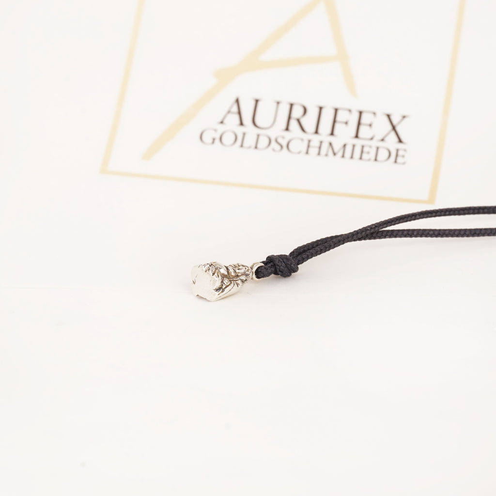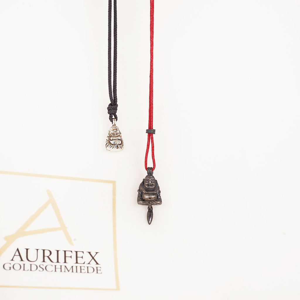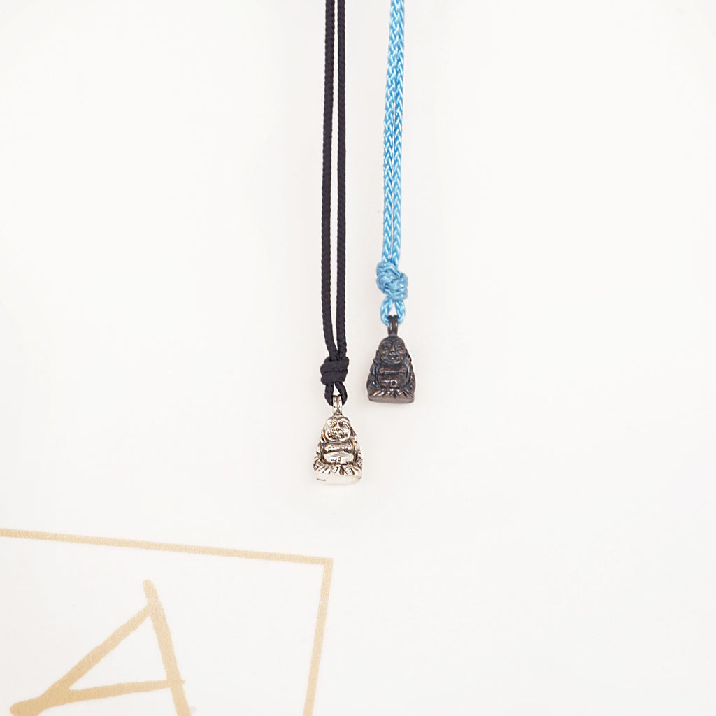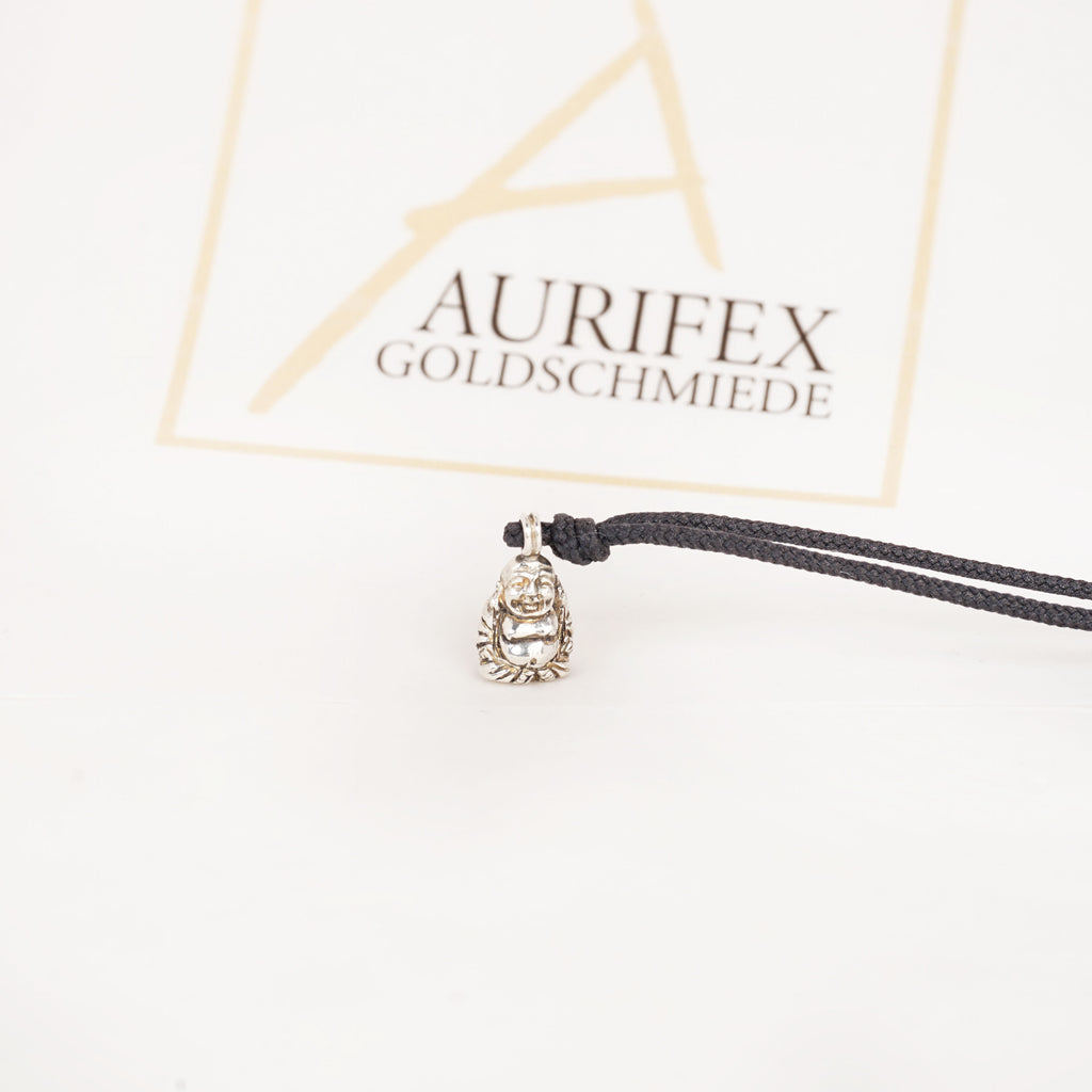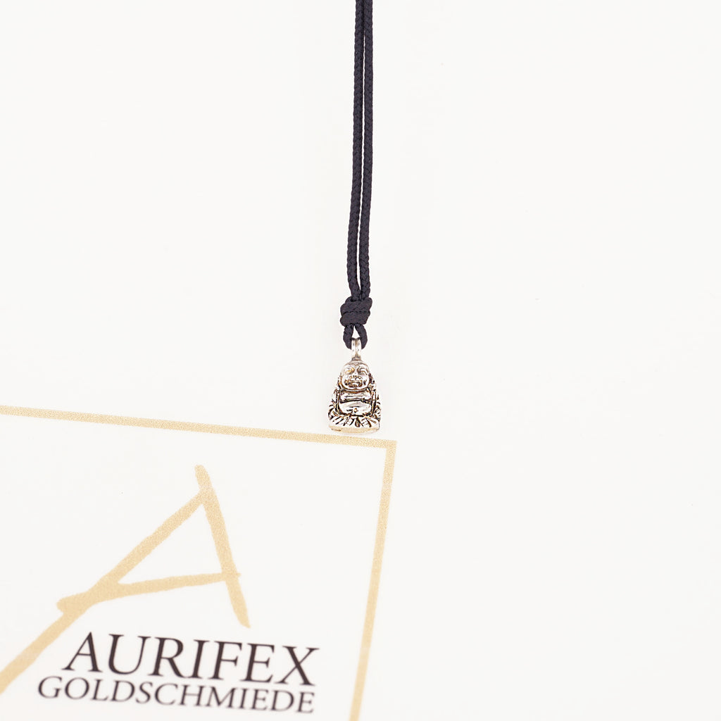 A delicate necklace made from 925/000 silver with paracord. The main feature of this necklace is the small Buddha with a polished surface.