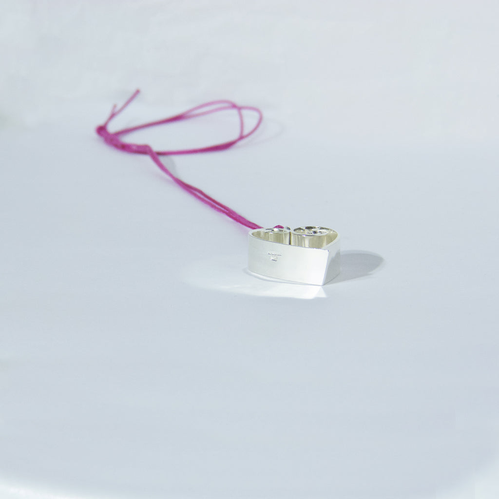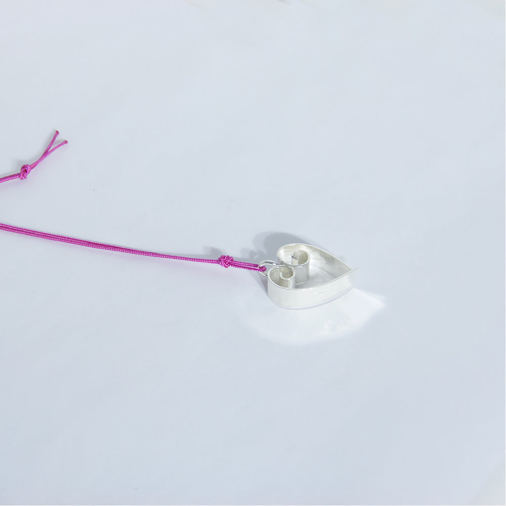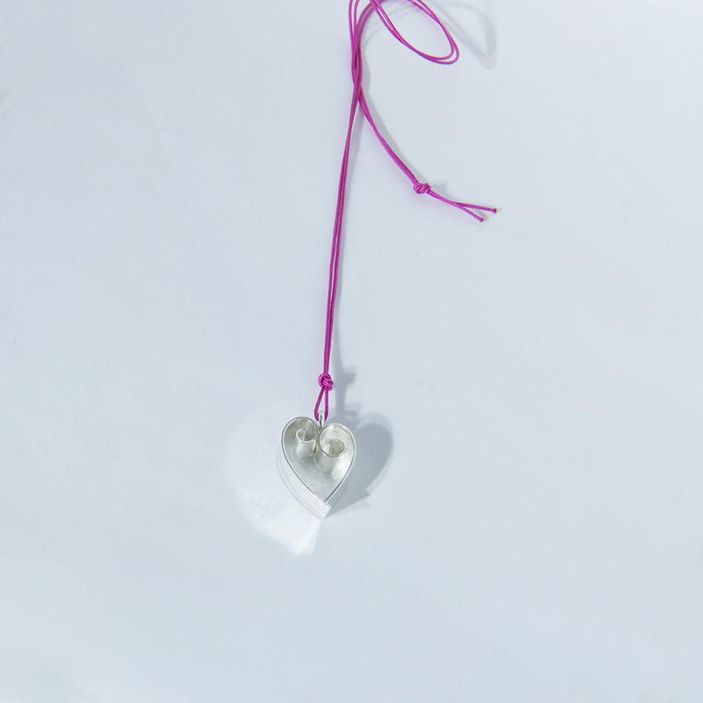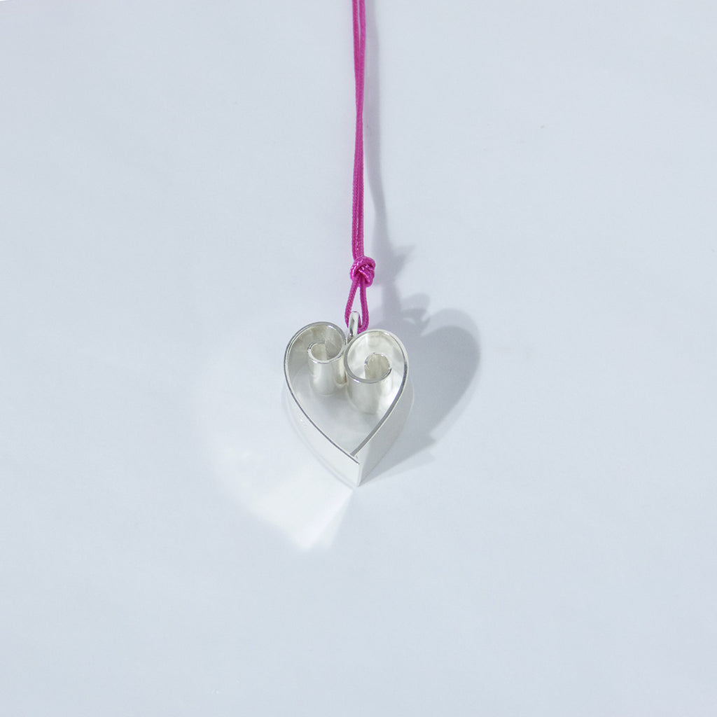 A delicate pendant from our Hearts collection handmade in 925/000 silver with a polished finish. This pendant is called Contour Heart. Viewed from above the pendant looks very delicate, viewed from the side you grasp the height of the pendant. The heart is attached to a ribbon made of paracord, but can also be worn on an eyelet chain.
