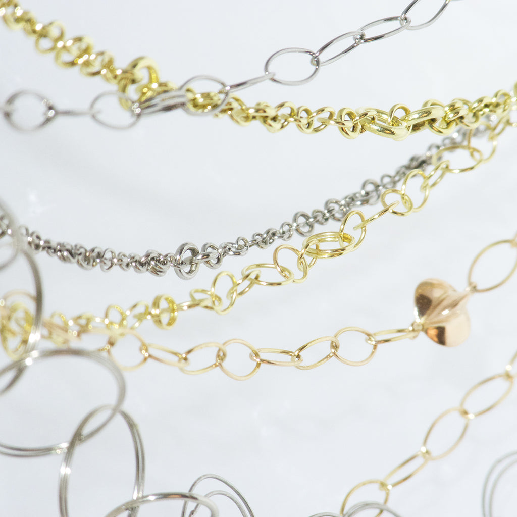 Unsere Ösenketten gibt es in den Größen S,M und L. Die Größenangaben beziehen sich auf die Größen und Stärken der Ösen. Auf Anfrage fertigen wir einen solchen Halsschmuck auch gerne in anderen Farben.